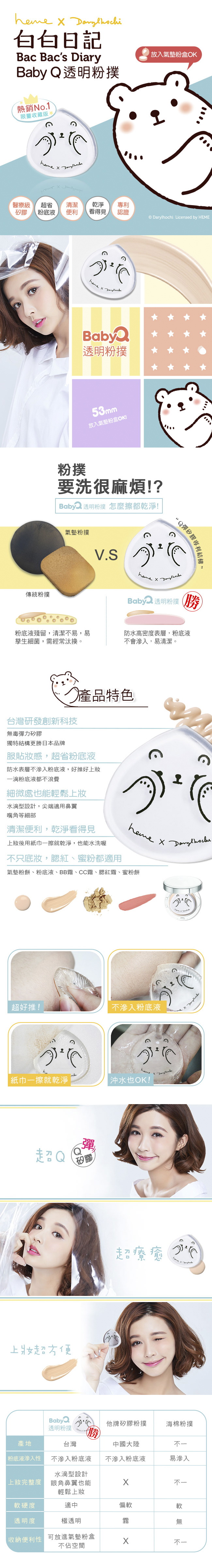 【結婚送禮推薦】heme 喜蜜~babyQ透明粉撲(1入)白白日記限定款 - 06790089超怕缺貨的 用過之後感覺真的很不賴,比我上次買的好用喔!!大力推薦!!!